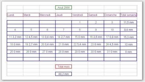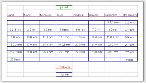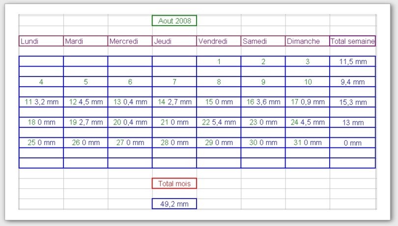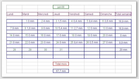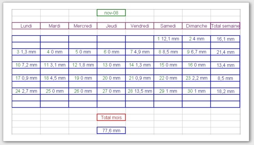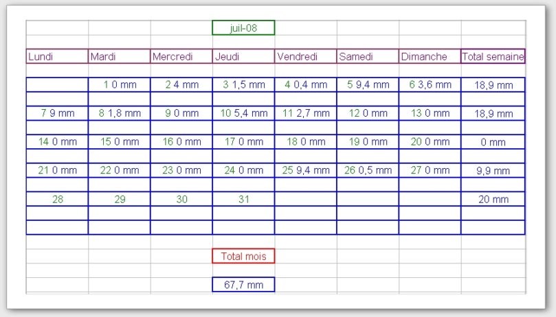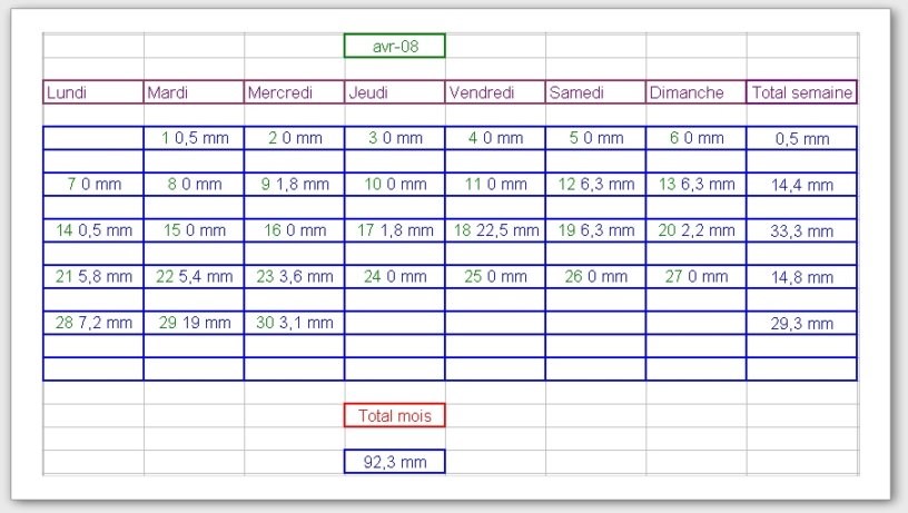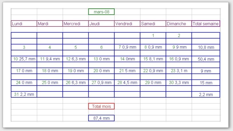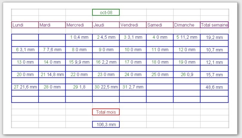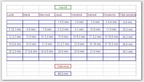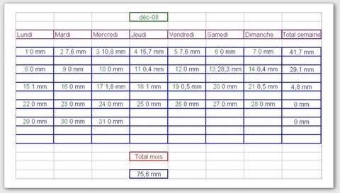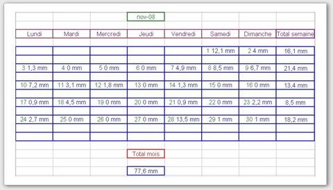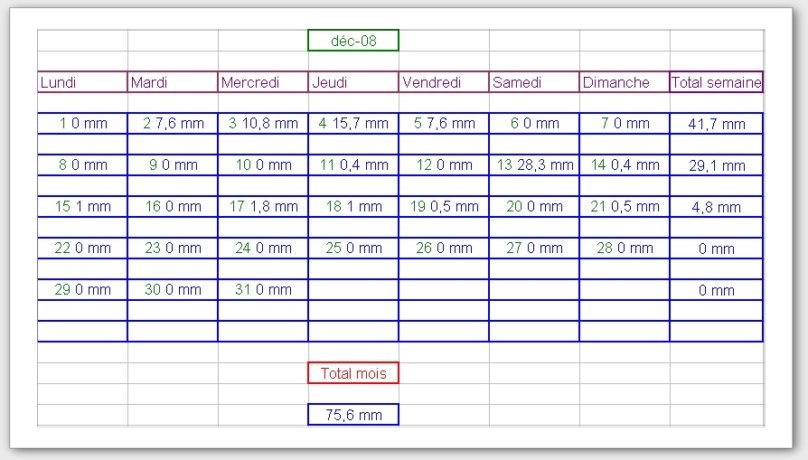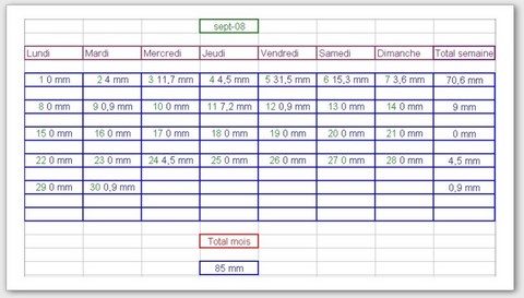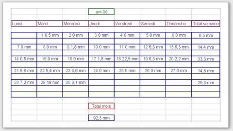 Tableau des précipitations mois années