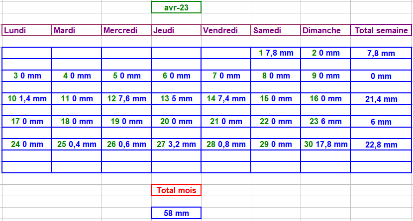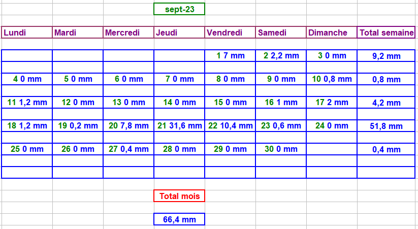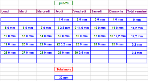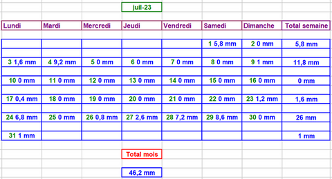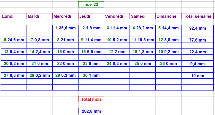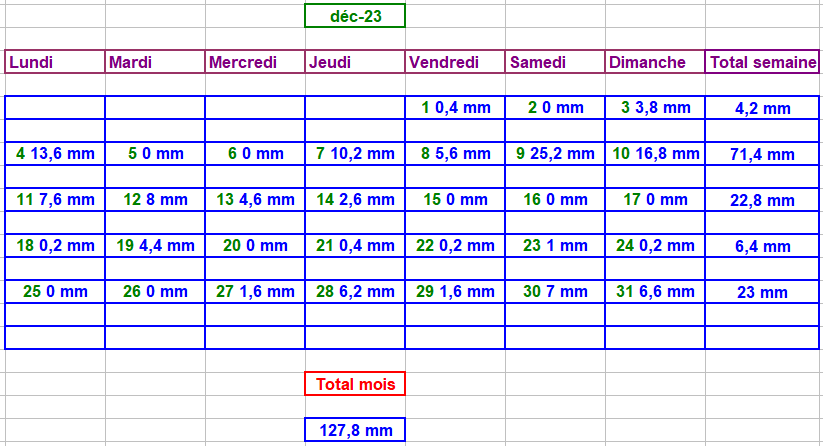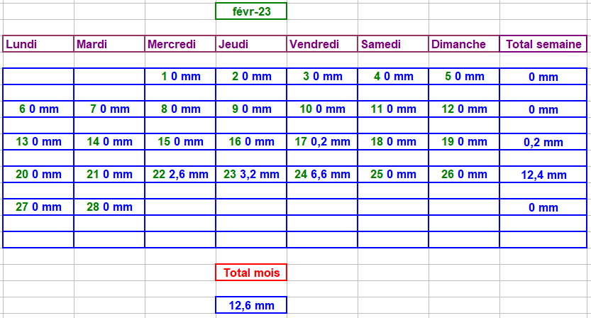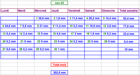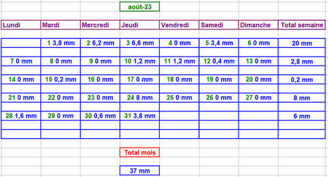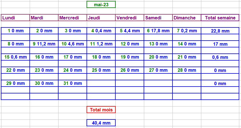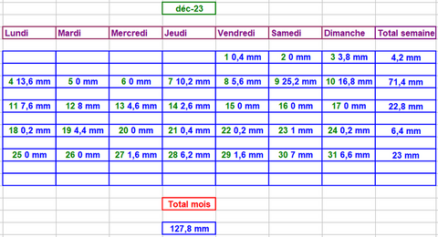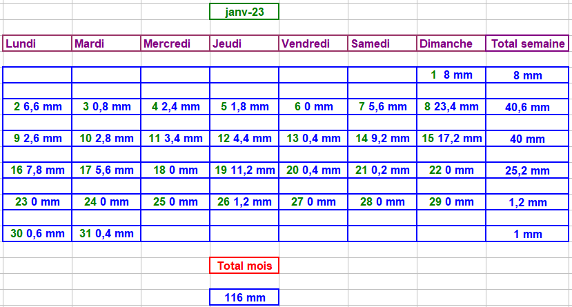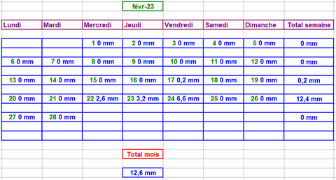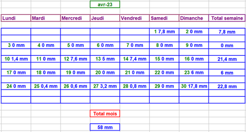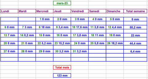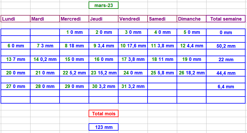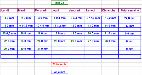 Tableau des précipitations mois années